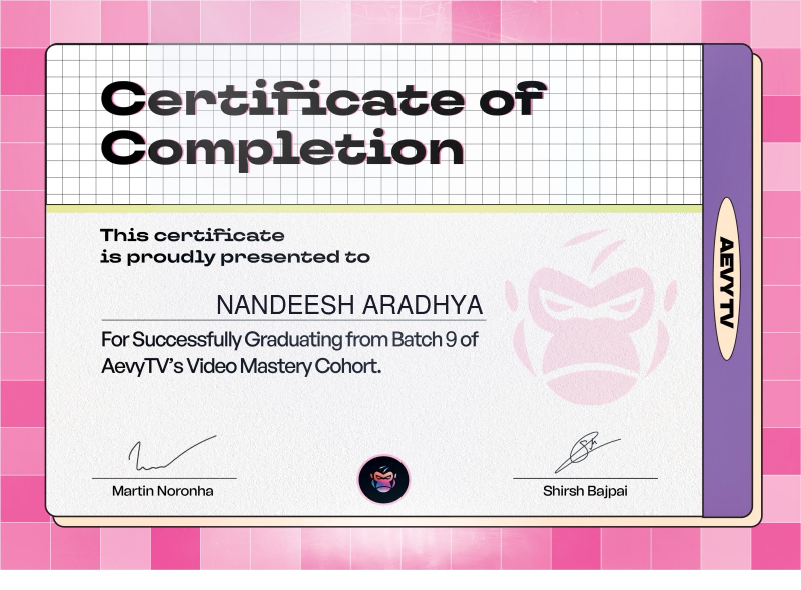 My Editing journey began with solid foundation at AevyTV editing school i learnt important of Story telling principles through video editing, through formal education. I hold a degree in BBA in Management & Marketing from Bengaluru University, where I not only acquired technical expertise but also developed a profound appreciation for the beautiful union of aesthetics and functionality.